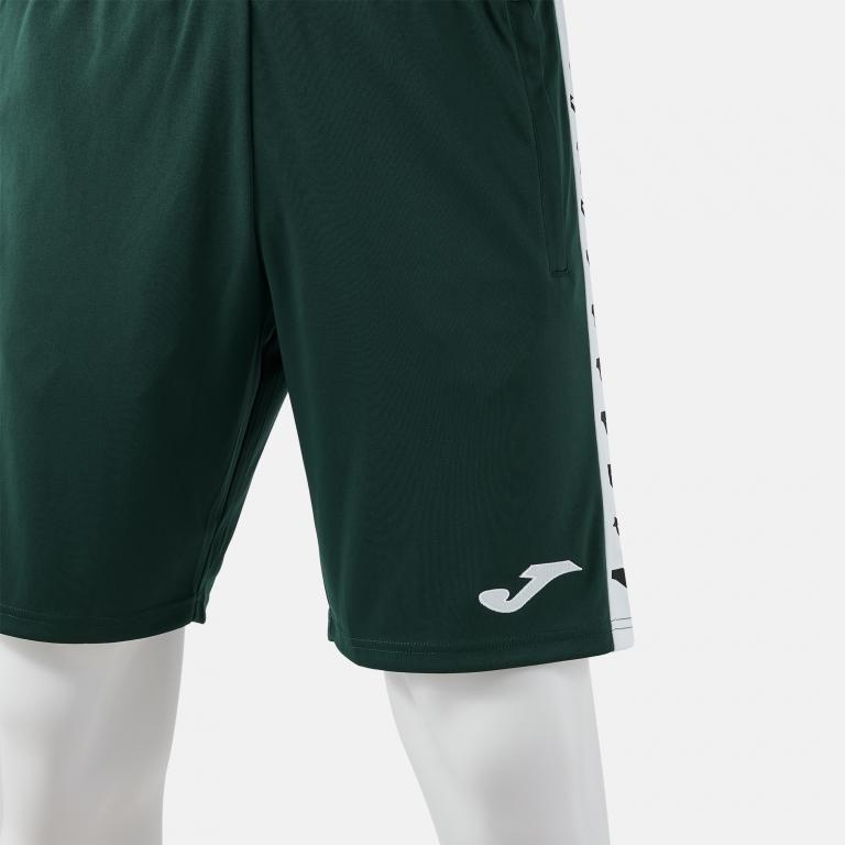 Szorty z elastycznym pasem regulowanym za pomocą wewnętrznego sznurka. Posiadają dwie boczne otwarte kieszonki z siateczką od środka. Wykonane z lekkiej , oddychającej i wytrzymałej tkaniny. Wyszywane logo joma 100% poliester interlock.